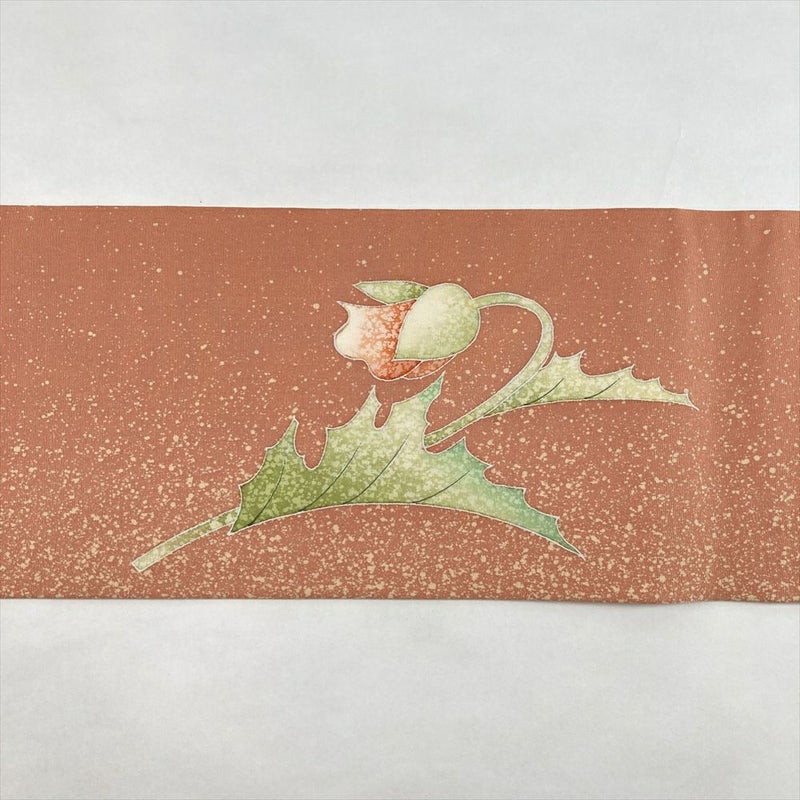 (中古)名古屋帯 珊瑚 ピンク カジュアル 名古屋仕立て 染め 草花 絹