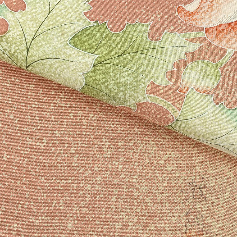 【色柄】珊瑚 ピンク カジュアル 草花 染め