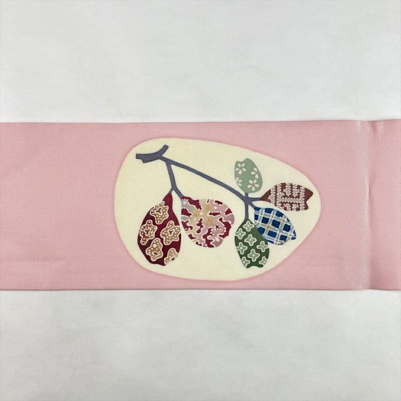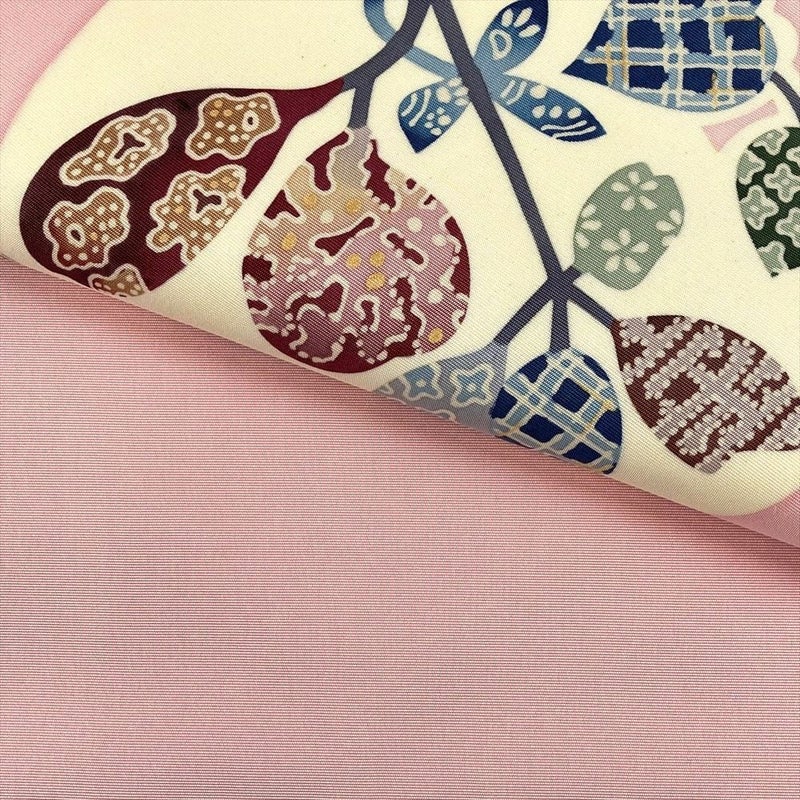【色柄】ベビーピンク カジュアル 葉と実 塩瀬 染め
