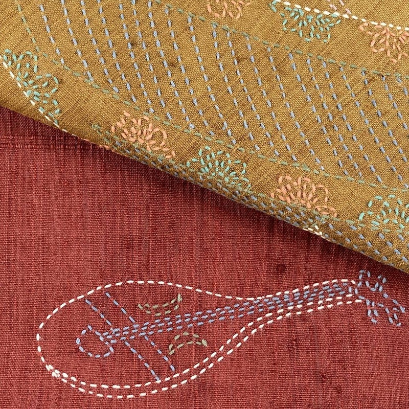 【色柄】臙脂 赤 カジュアル 刺し子 楽器 染め 色糸
