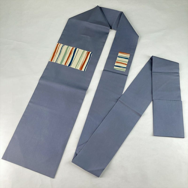 (中古)名古屋帯 灰青 カジュアル 名古屋仕立て 塩瀬 染め 抽象柄 絹