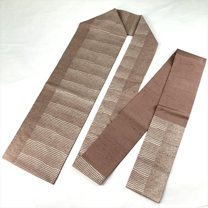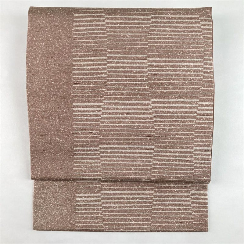 (中古)名古屋帯 梅鼠 くすみピンク カジュアル 名古屋仕立て 紬 染め 吹雪 幾何学 絹