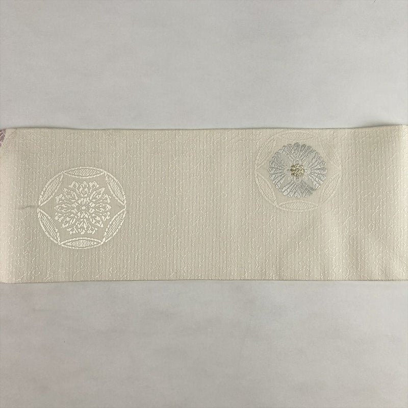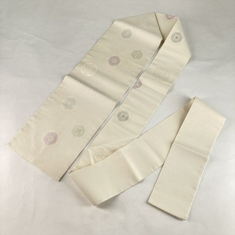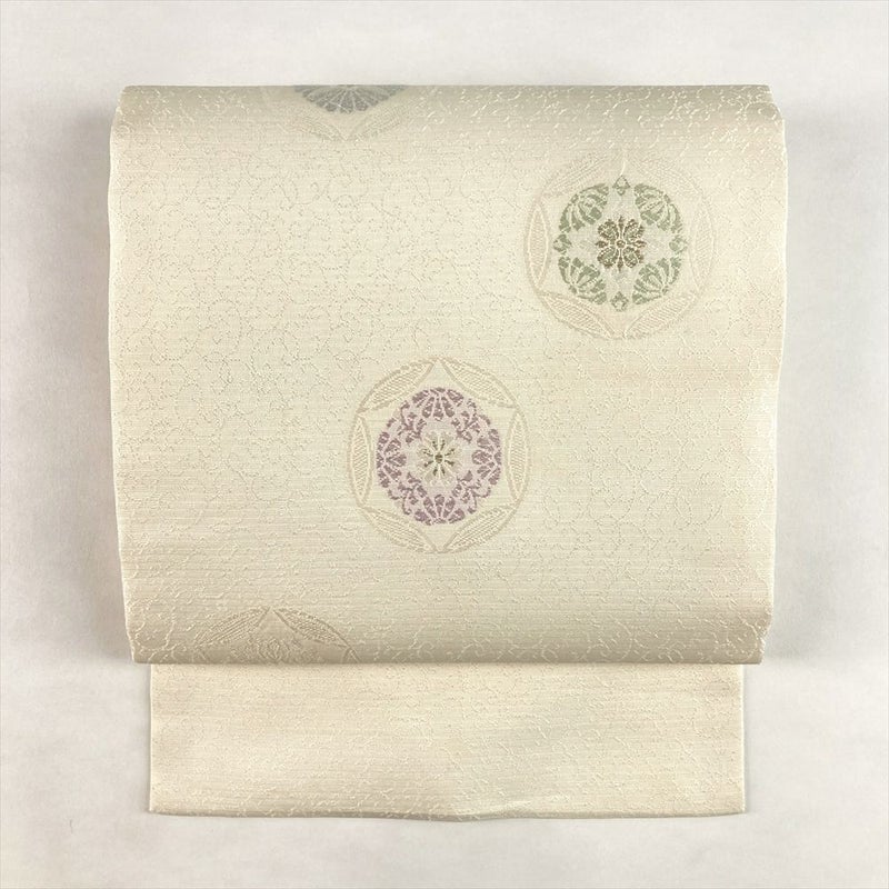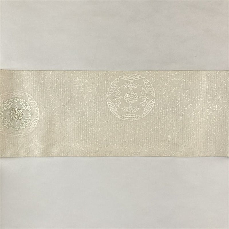 (中古)名古屋帯 白 カジュアル 名古屋仕立て 織り 唐草 有職文調 絹