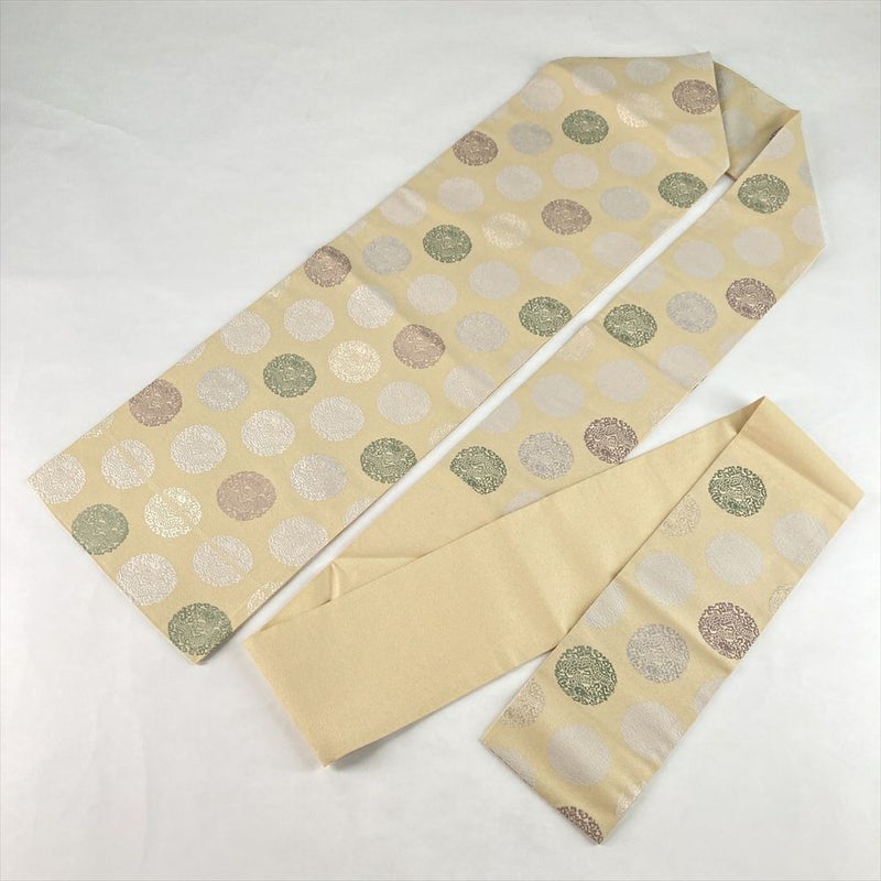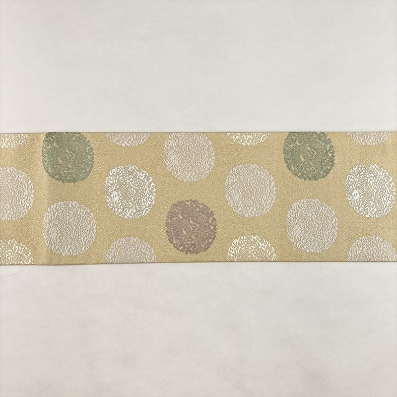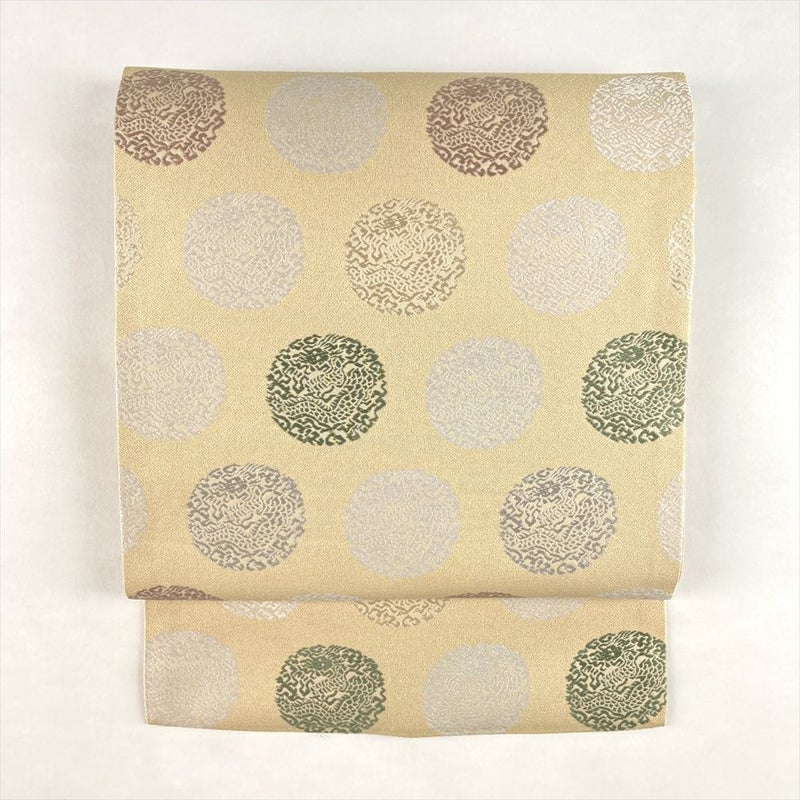 淡黄の地に龍の丸を織り込んだ名古屋帯。