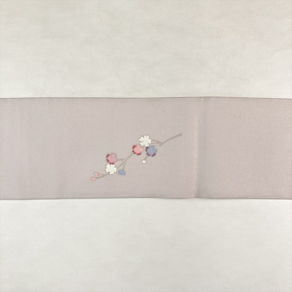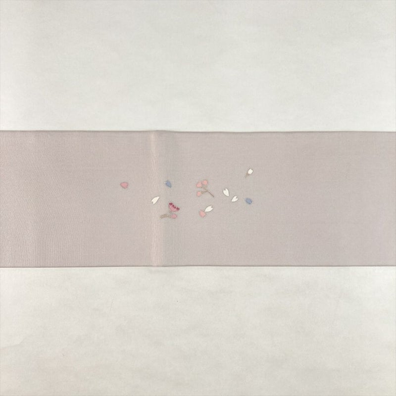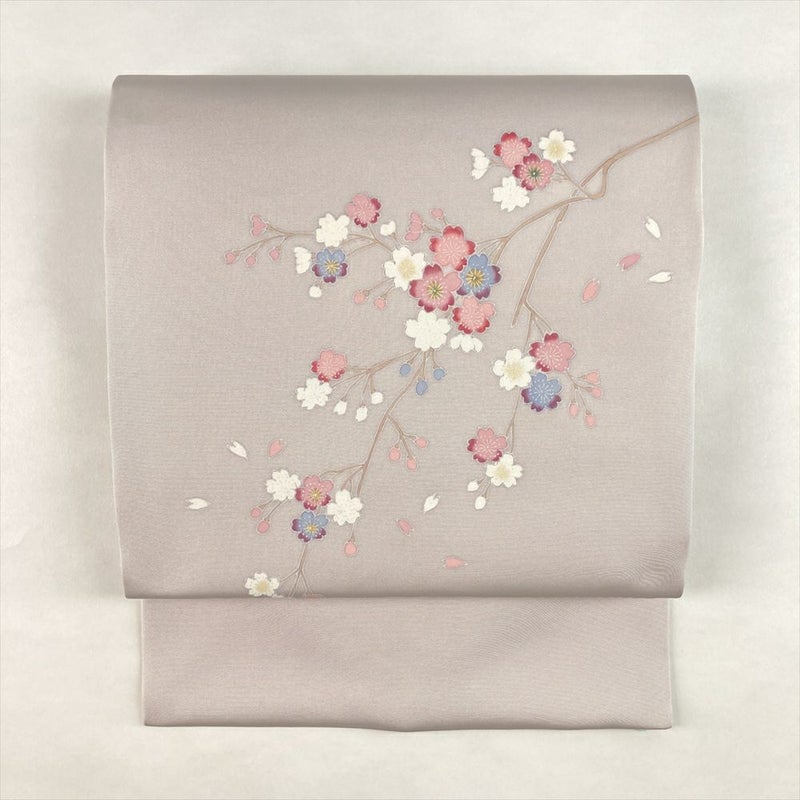薄紫の塩瀬地に手描きの桜が咲く、春のお出かけにぴったりの名古屋帯。