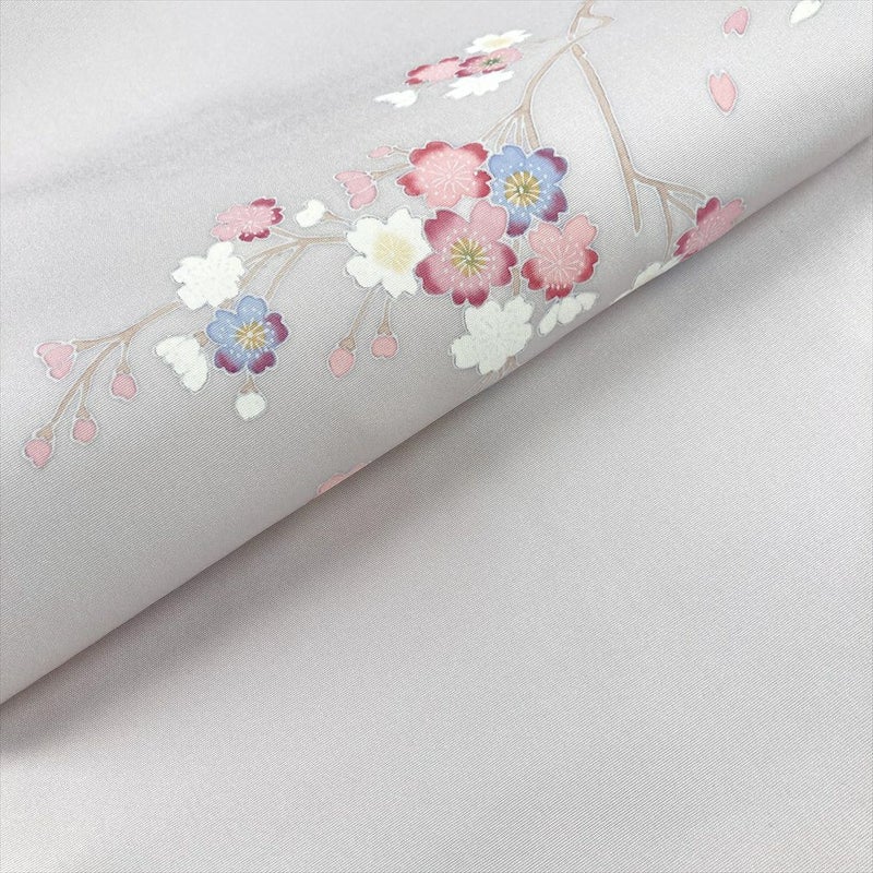 【色柄】薄紫 カジュアル 手描き 桜 塩瀬 染め