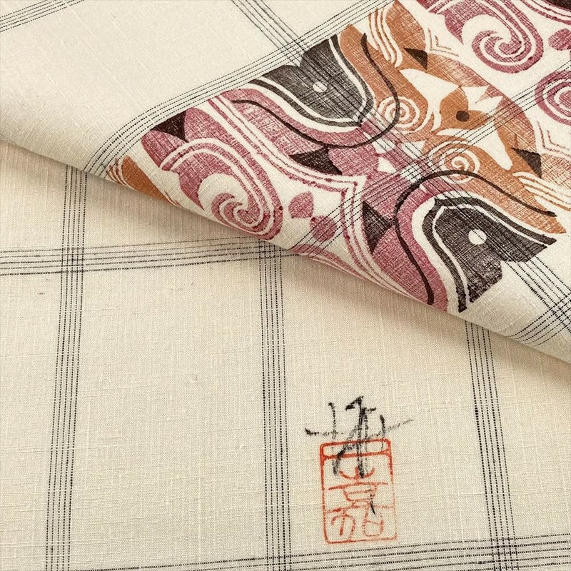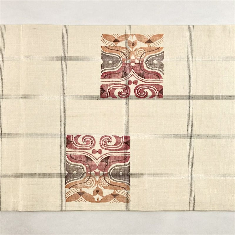 【色柄】白茶 生成り カジュアル 花草文 こうげい織 型絵染