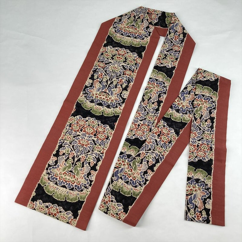 【色柄】薄赤 墨黒 カジュアル 樹下双鳥 染め 絞り