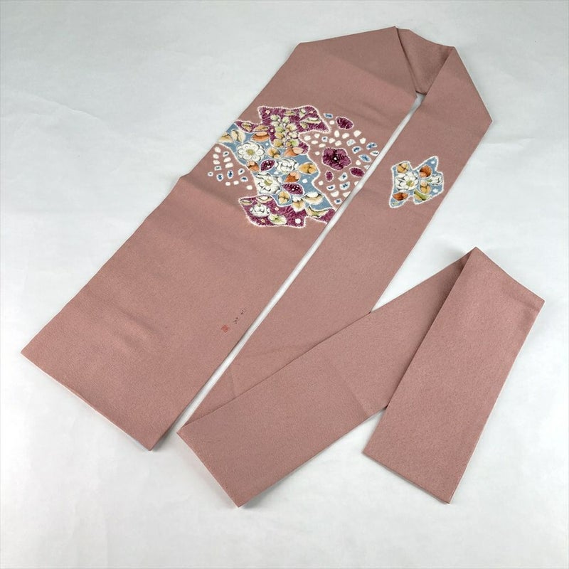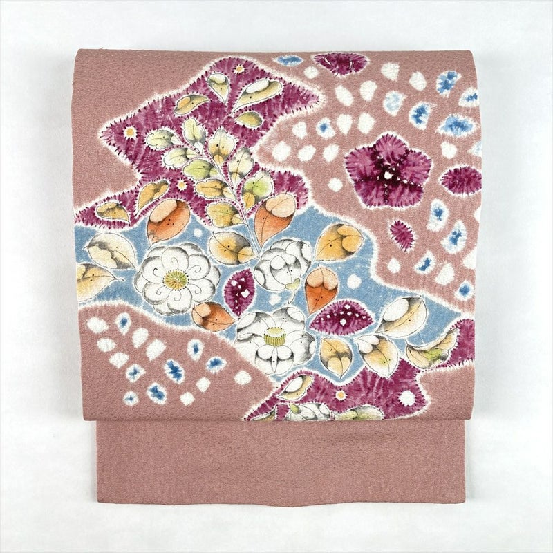 (中古)名古屋帯 くすみピンク カジュアル 名古屋仕立て 染め 辻が花 絹