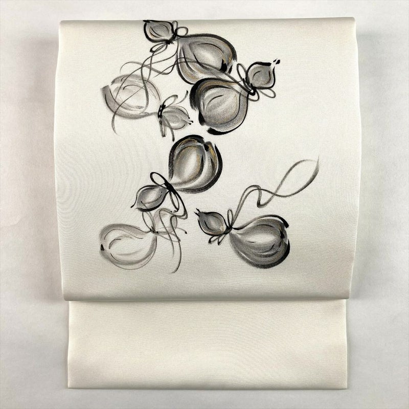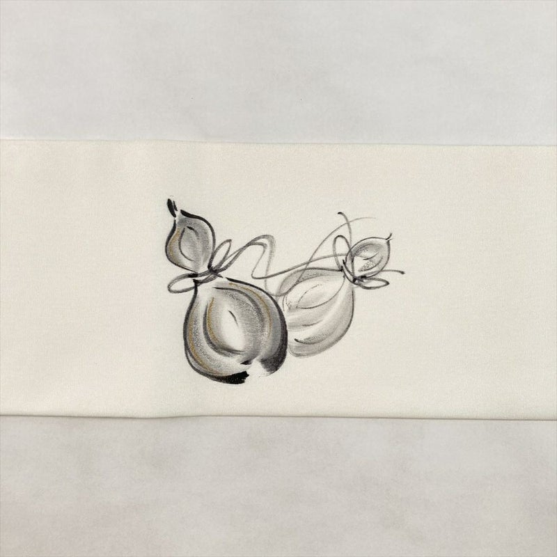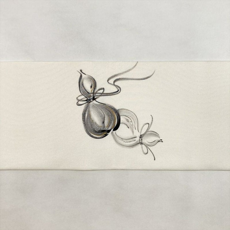 【色柄】白 アイボリー カジュアル 瓢箪 塩瀬 手描き 金彩