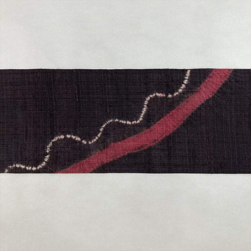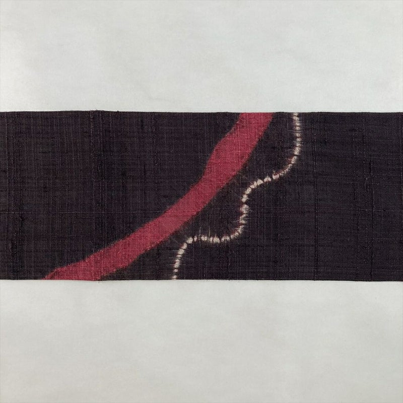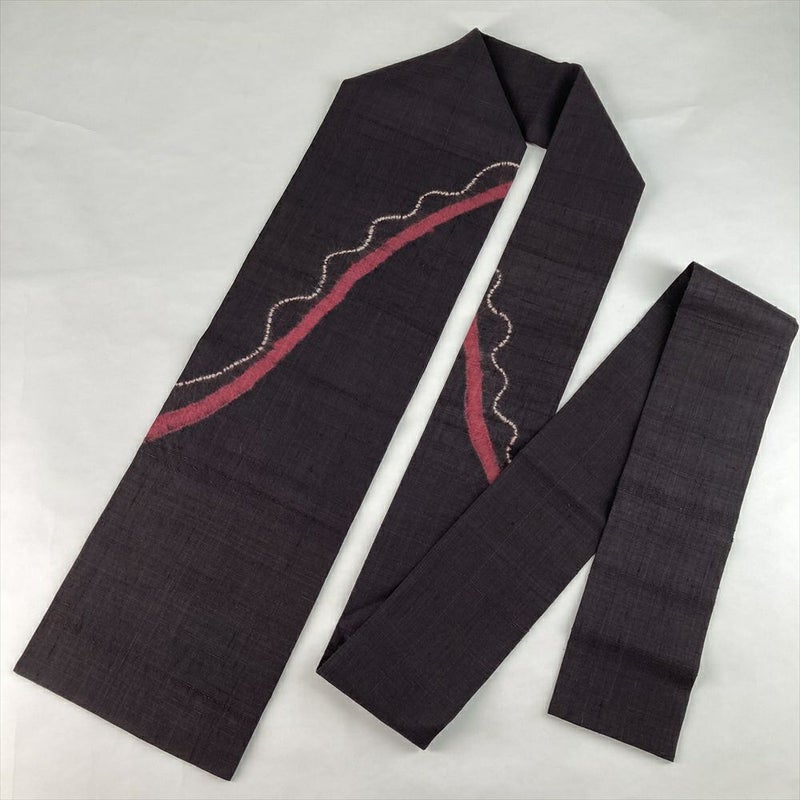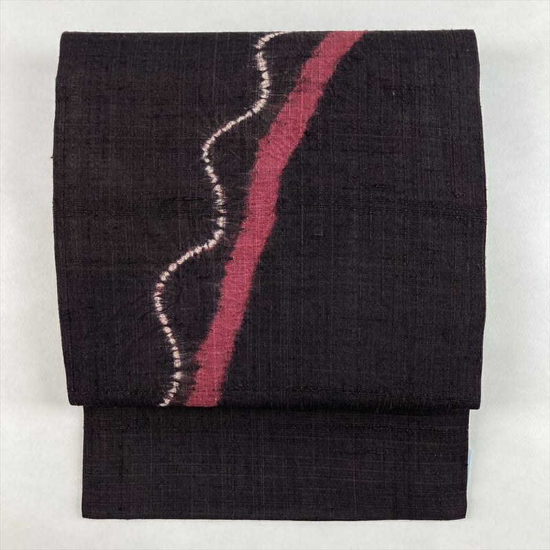 (中古)名古屋帯 濃紫 茶 カジュアル 名古屋仕立て 紬地 絞り 染め 曲線 シンプル 絹