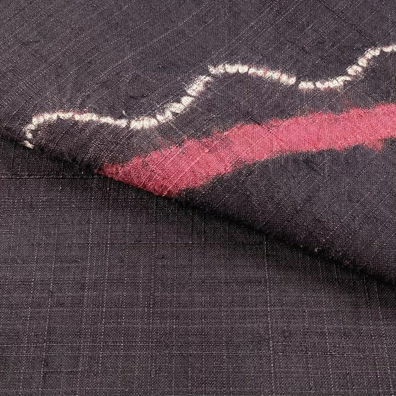 紬地に絞り染めで描かれた曲線が、シンプルながら奥行きある表情を演出。