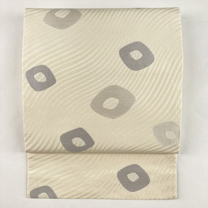 アイボリーの織り地に抽象柄を配した帯。