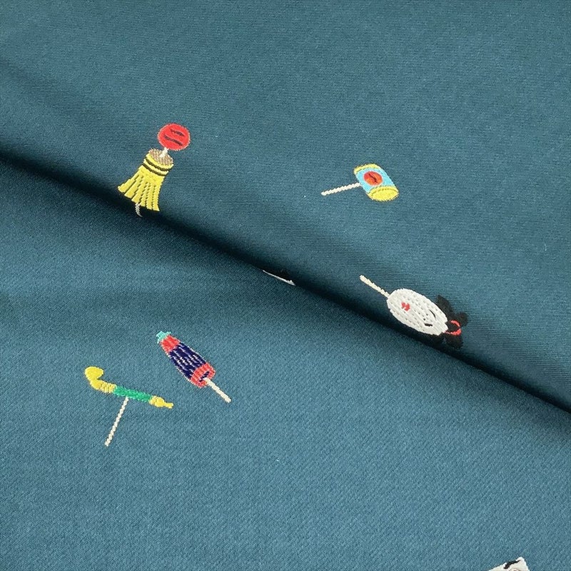 深緑の織り地にあめ細工風の意匠。