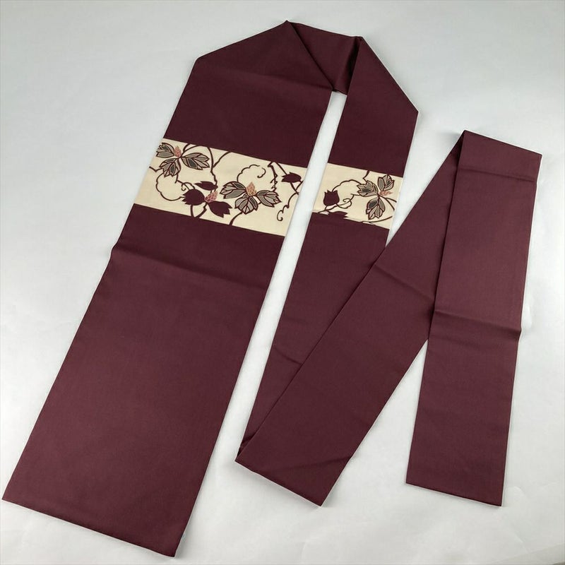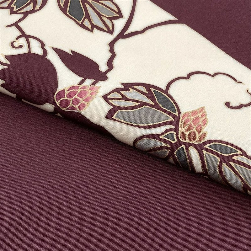【色柄】小豆色 赤紫 カジュアル 蔓葉に実 塩瀬 染め