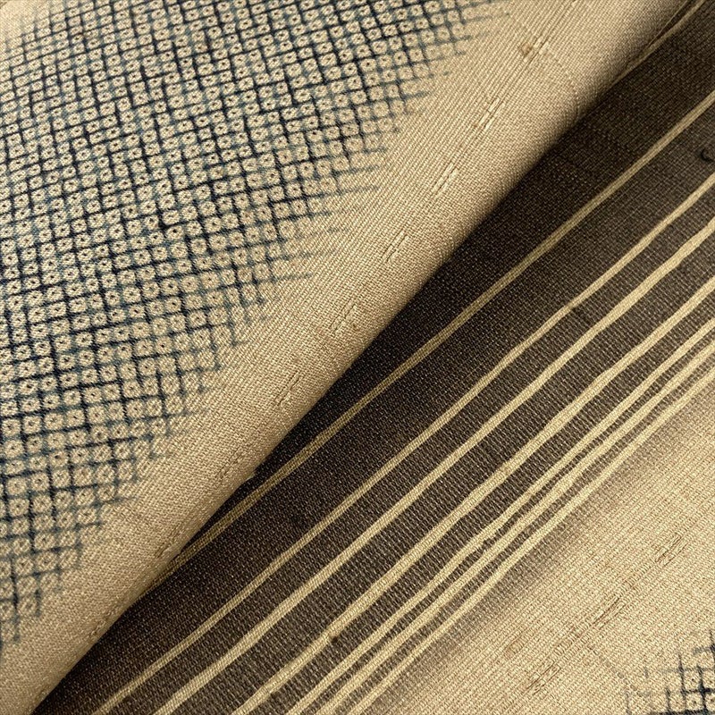【色柄】薄茶 カジュアル 横段 染め疋田 織り染め