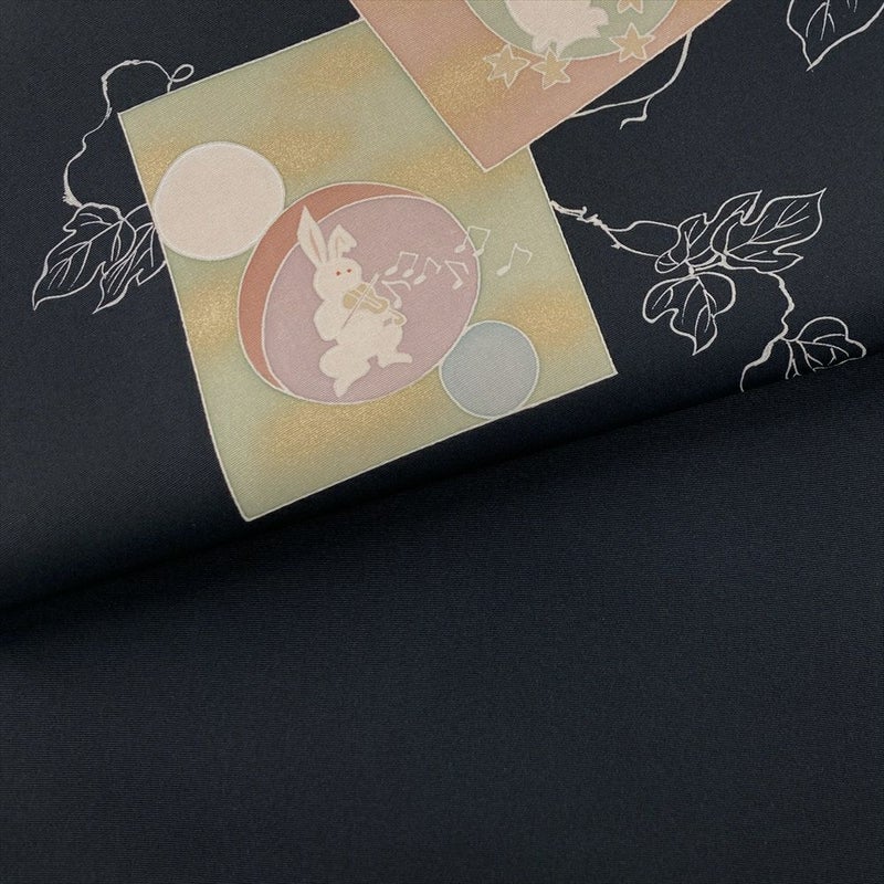 【色柄】黒 カジュアル 月に兎 塩瀬 染め