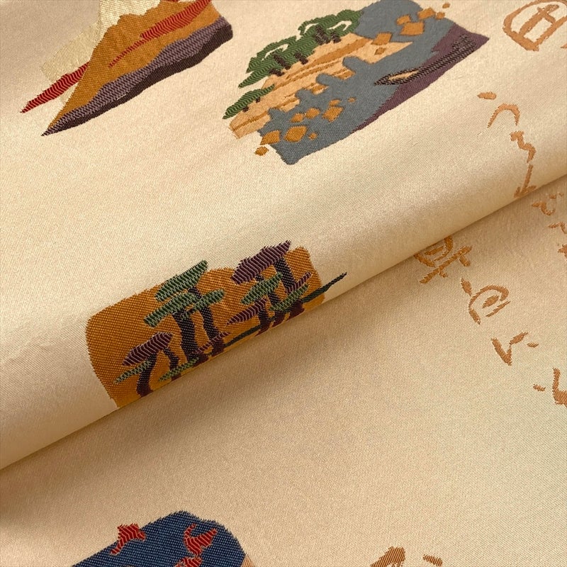 【色柄】生成り ベージュ カジュアル 百人一首 織り