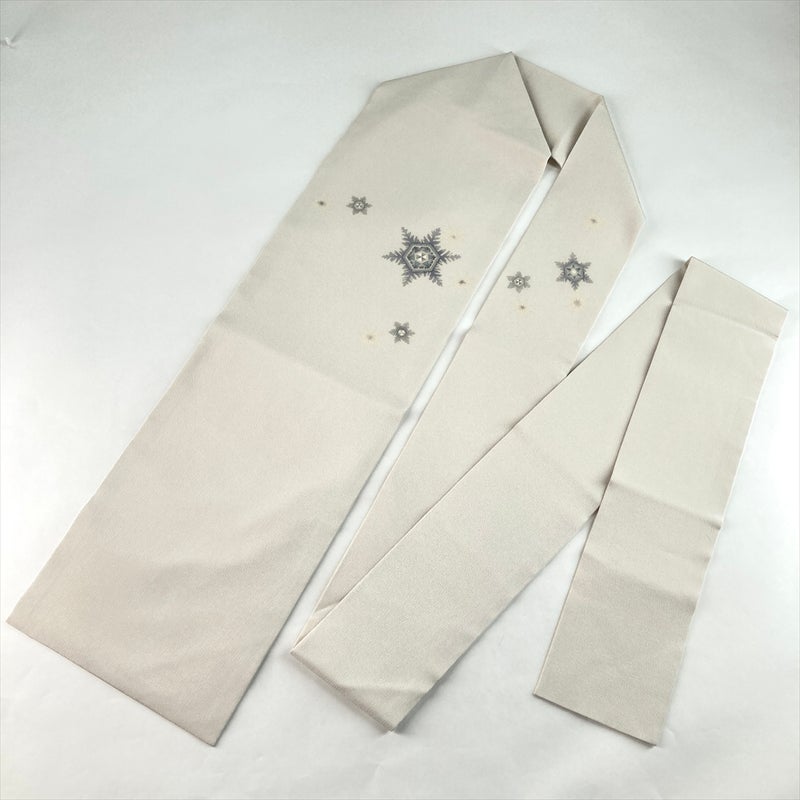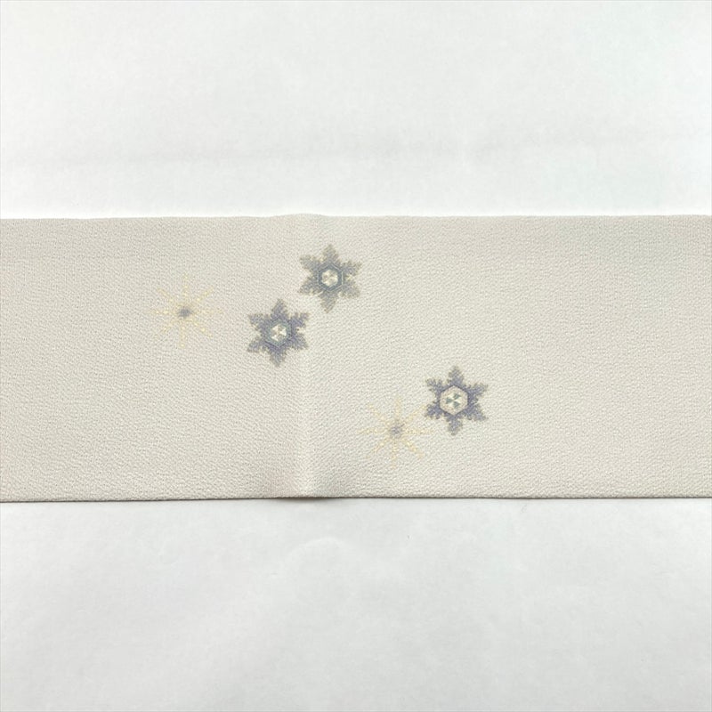(中古)名古屋帯 白 カジュアル 名古屋仕立て 手描き 雪の結晶 絹