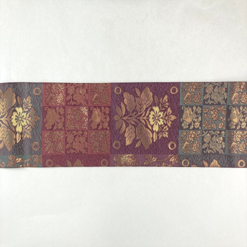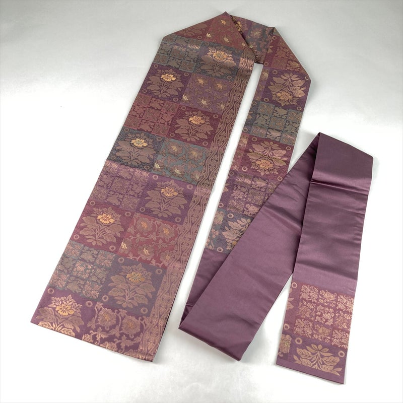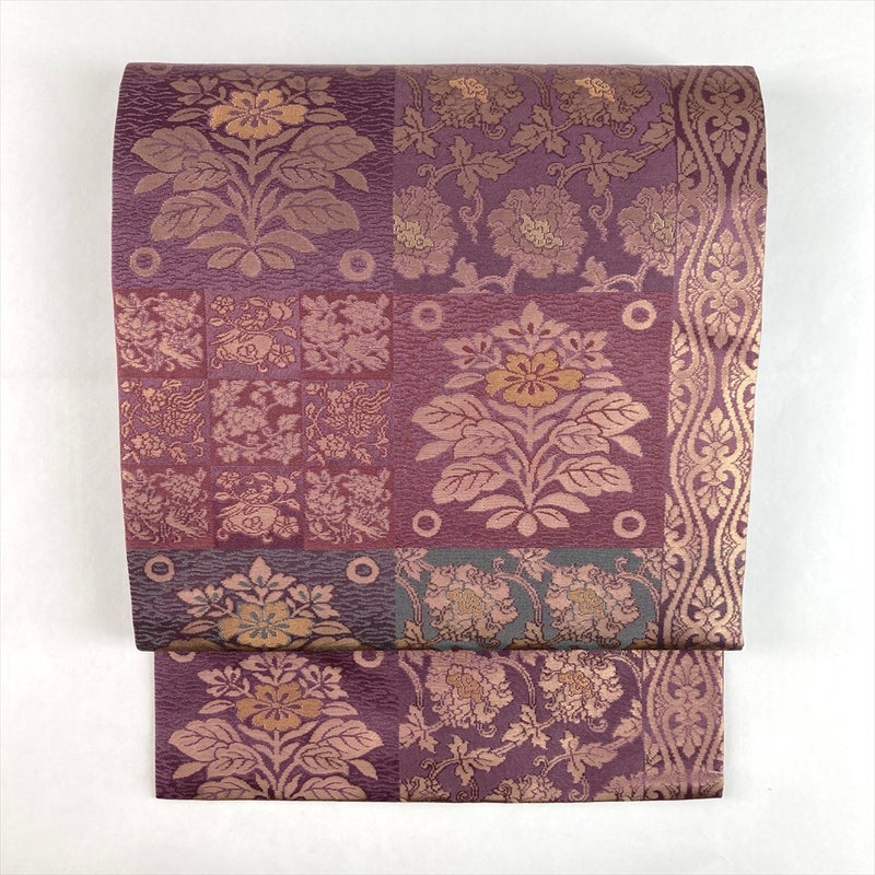 (中古)名古屋帯 紫 カジュアル 名古屋仕立て 織り 天平文様 絹