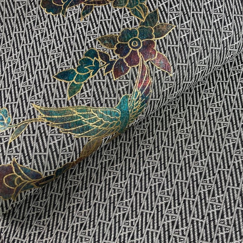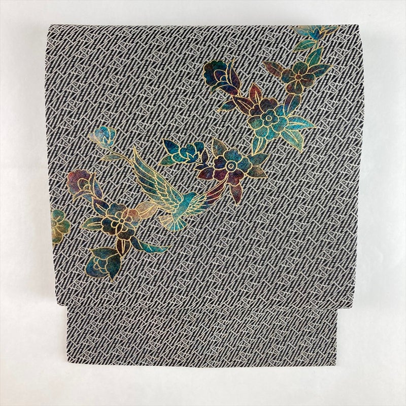 【色柄】黒 白 カジュアル 花鳥 斉藤三才 織り 金彩