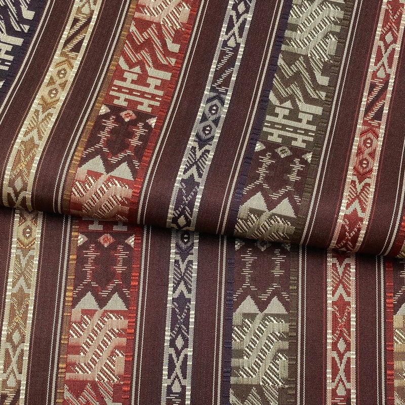 【色柄】茶 カジュアル 縦縞模様 オリエンタル 織り