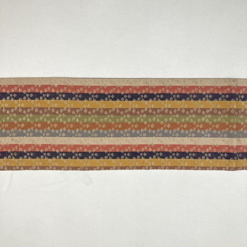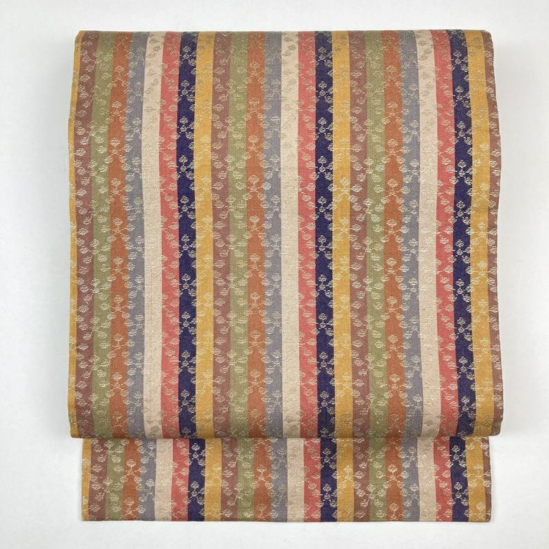 (中古)九寸名古屋帯 多色縞 カジュアル 間道 星梅鉢 名古屋仕立て 未洗い