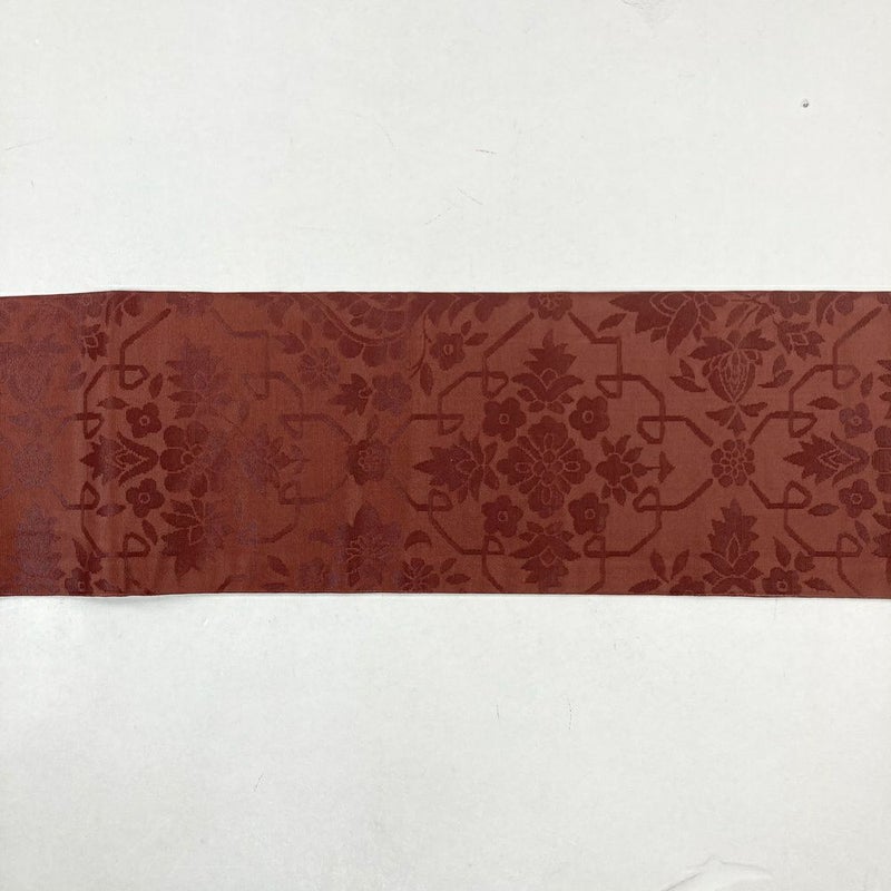 (中古)九寸名古屋帯 赤 カジュアル うるし箔調 植物 オリエンタル 名古屋仕立て 未洗い