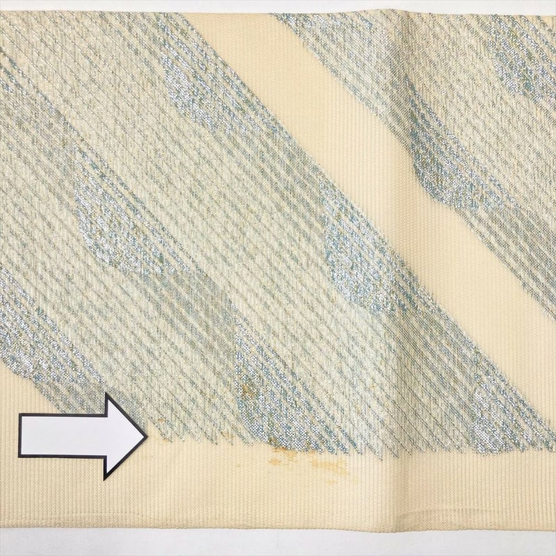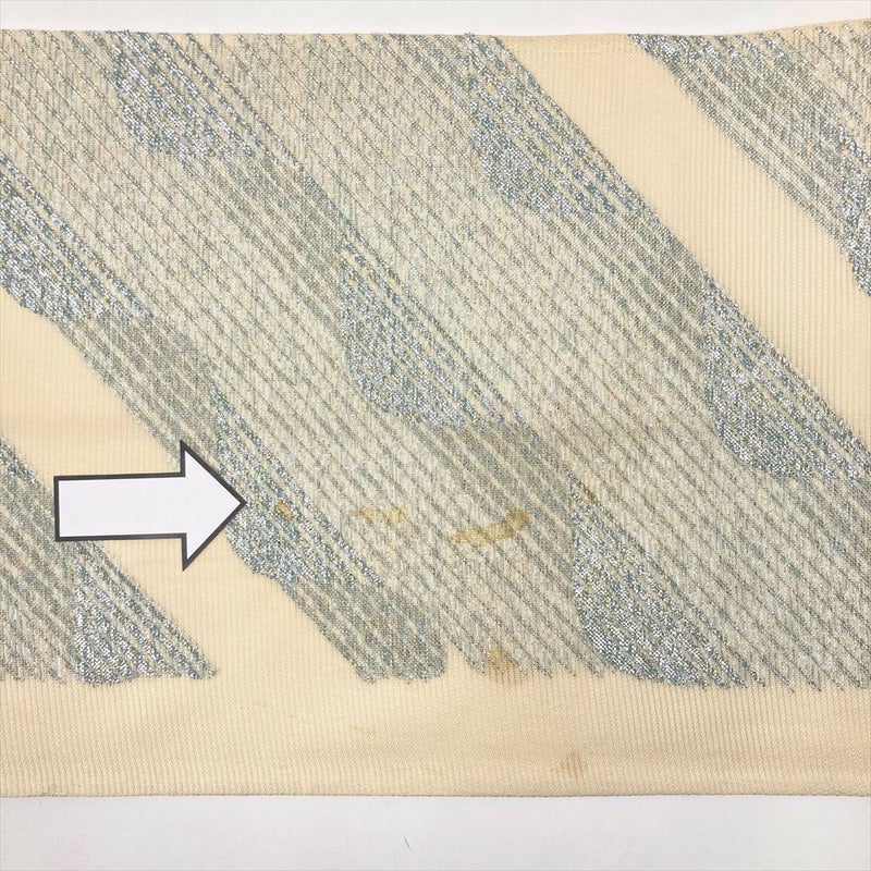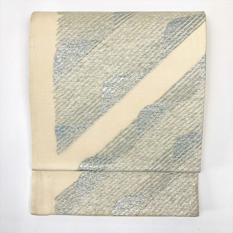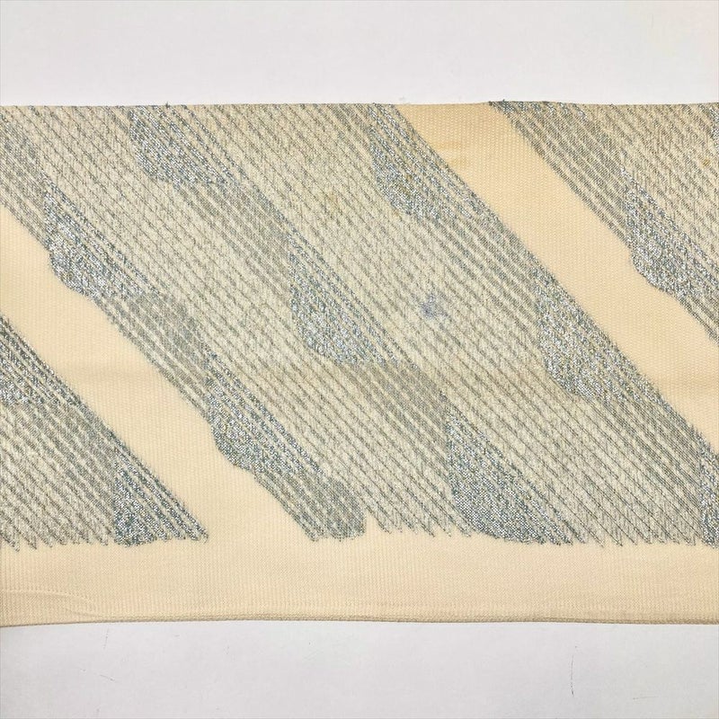 (中古)夏袋帯 生成り 絽 銀糸 カジュアル 六通 斜め取り 抽象柄