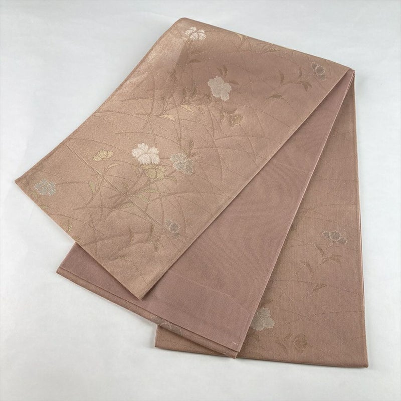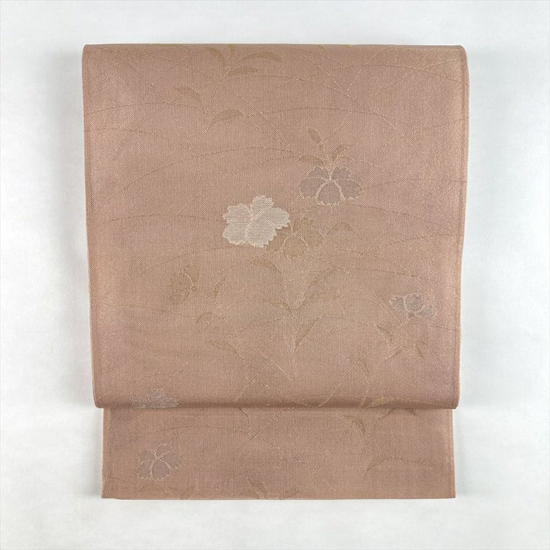 (中古)夏袋帯 ピンクベージュ カジュアル セミフォーマル 六通 紗 なでしこ 露芝 絹