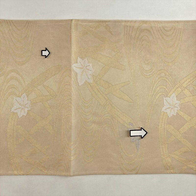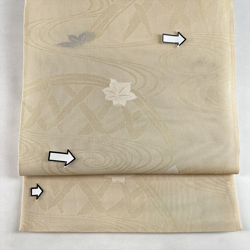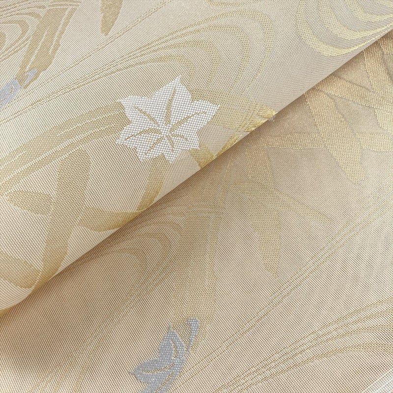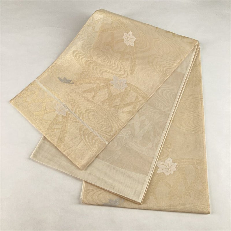 (中古)夏袋帯 金 クリーム カジュアル セミフォーマル 六通 紗 紅葉 流水 蛇籠 絹