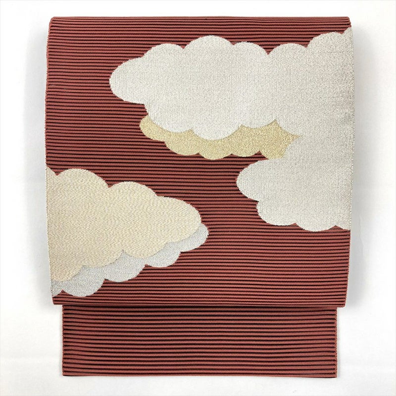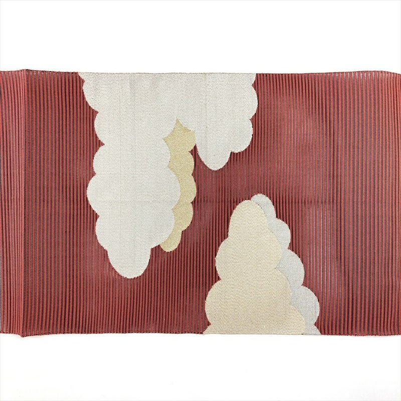 (中古)夏名古屋帯 紅梅 赤 カジュアル 平仕立て 絽綴れ 金銀糸 雲