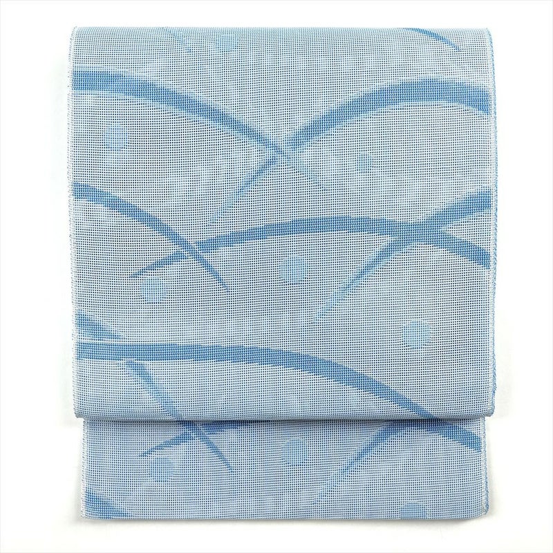 (中古)夏名古屋帯 薄青 カジュアル 松葉仕立て 紗 露芝