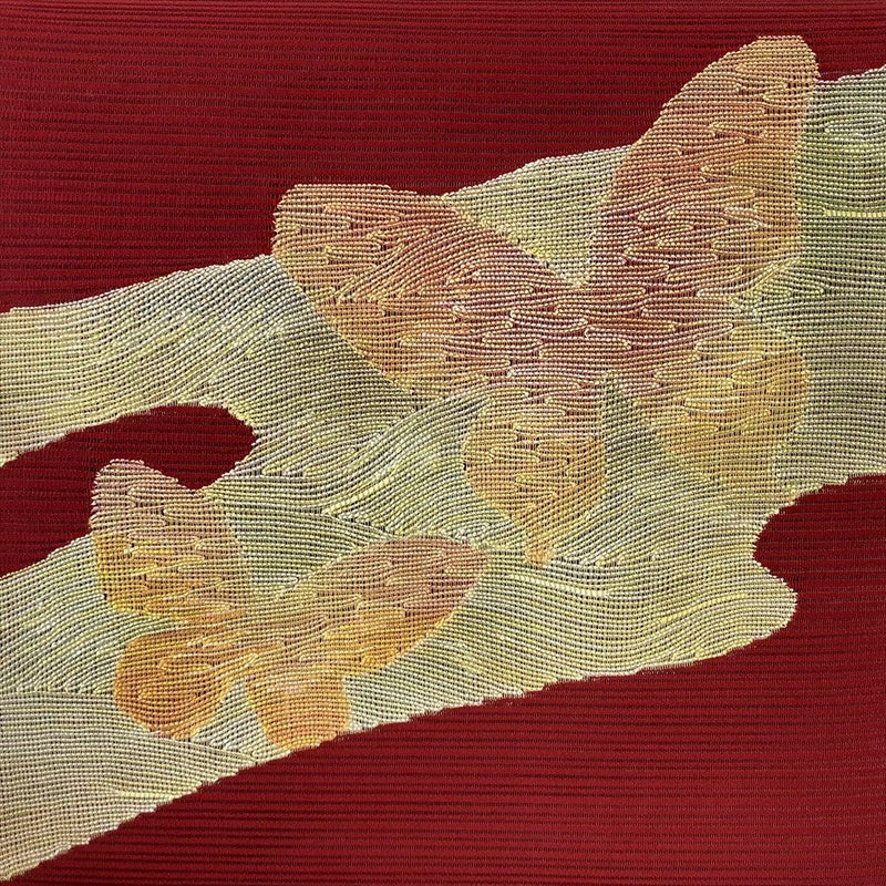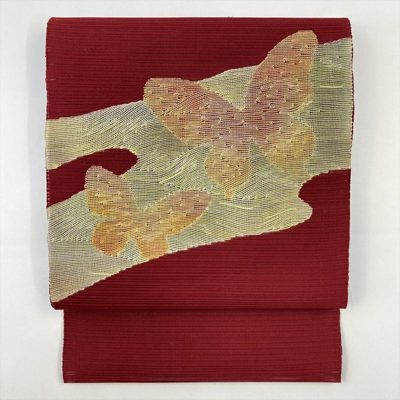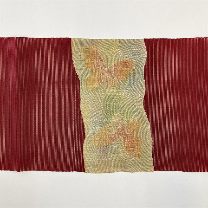 (中古)夏名古屋帯 赤 カジュアル 平仕立て 絽綴れ 霞 蝶