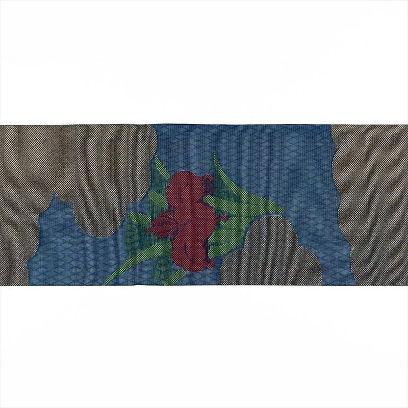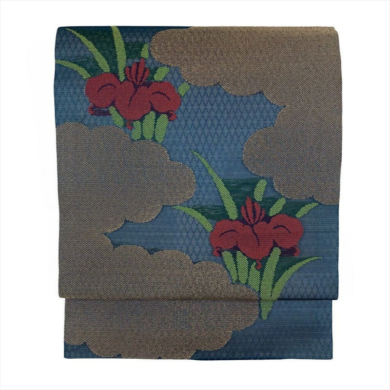 (中古)夏名古屋帯 青 カジュアル 名古屋仕立て 紗 金糸 雲 菖蒲