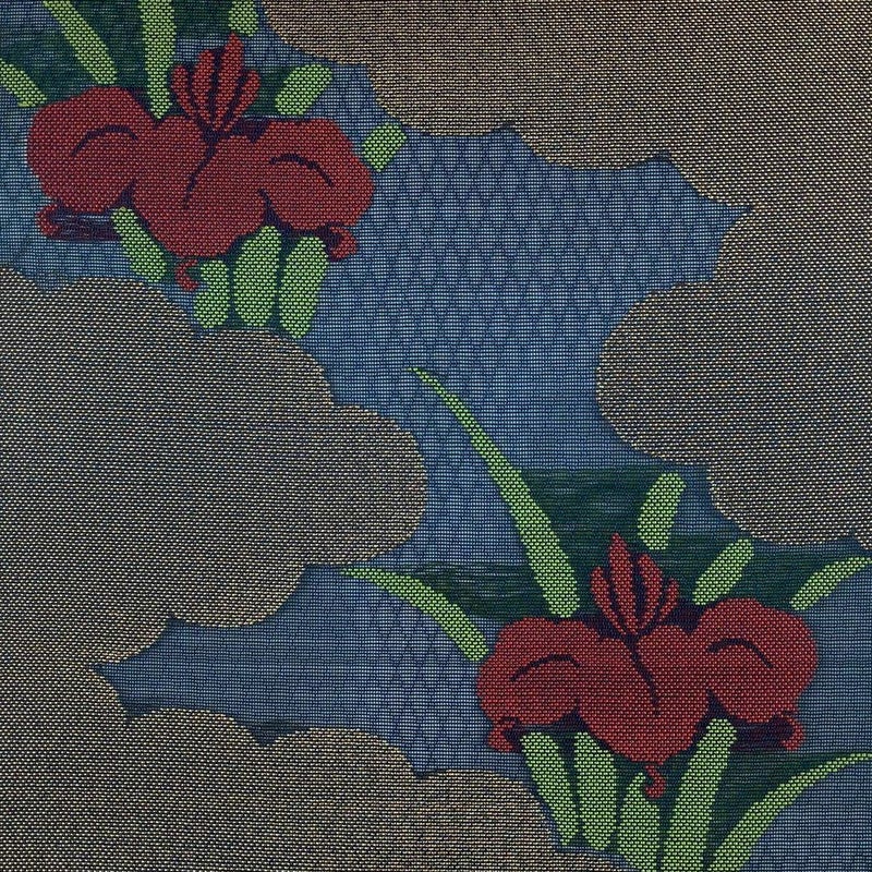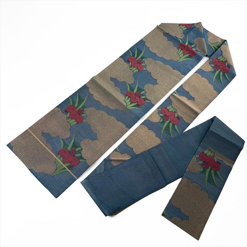 【色柄】青 カジュアル 雲 菖蒲 紗 金糸