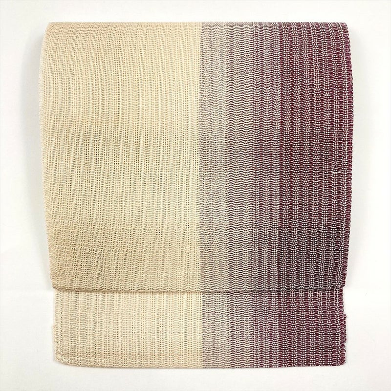 夏帯は透け感のある素材で作られているため、見た目にも涼しげです。色や柄、素材など、さまざまなバリエーションがあります。お気に入りの夏帯で装いをお楽しみください。保存臭がややございます。品質表示のタグがございます。