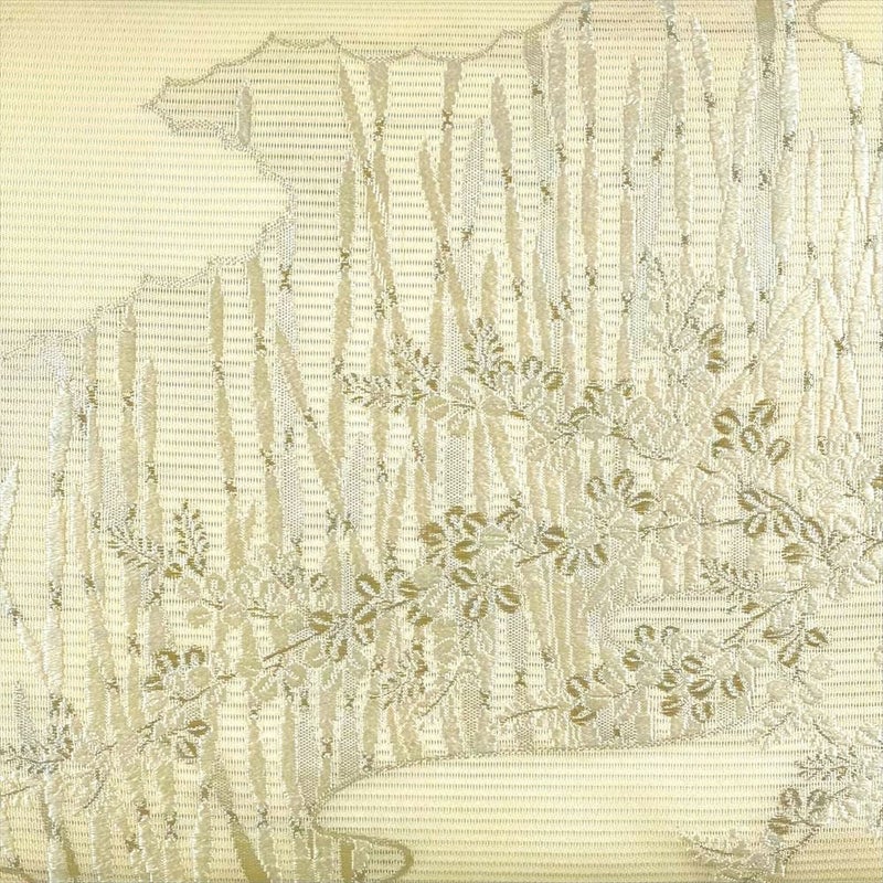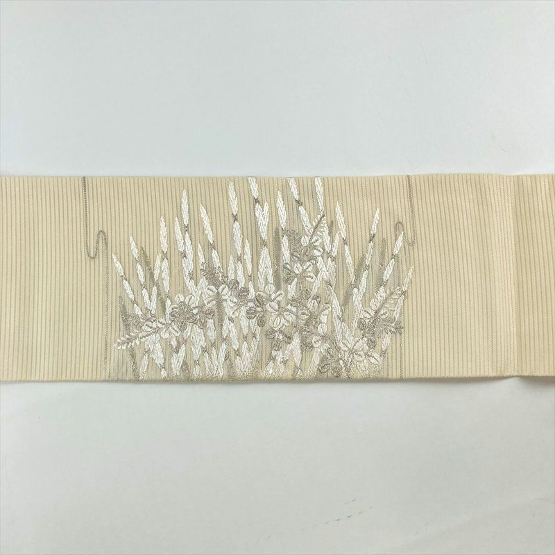 (中古)夏名古屋帯 生成り カジュアル 名古屋仕立て 絽 銀糸 木賊 萩