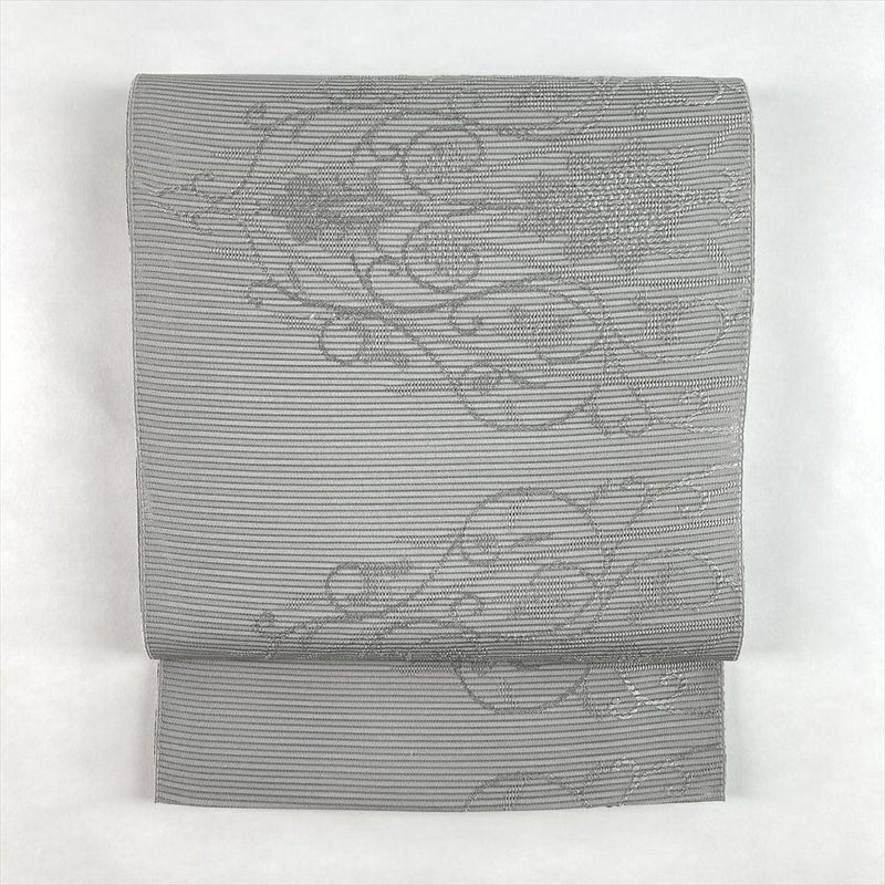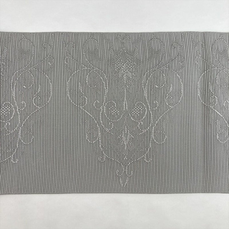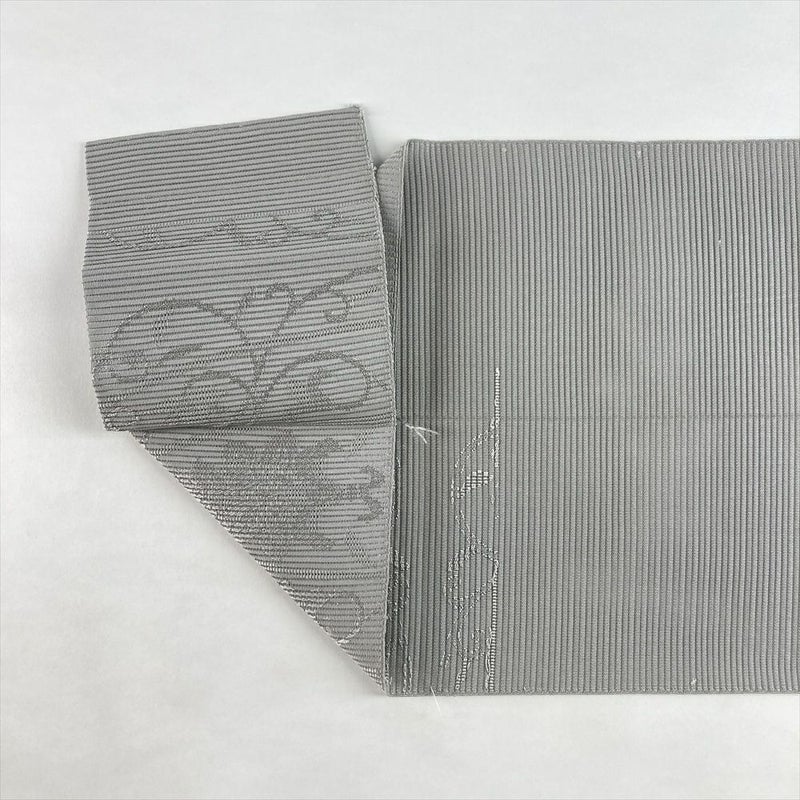 (中古)夏名古屋帯 グレー カジュアル 松葉仕立て 絽綴れ オリエンタル 果実文 絹