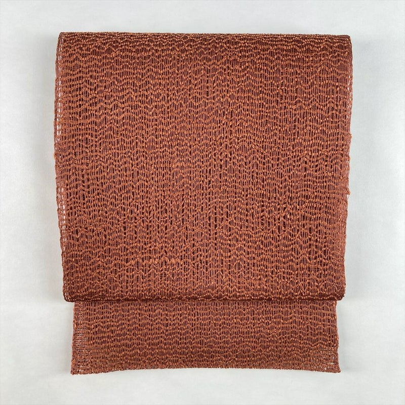 (中古)夏名古屋帯 薄赤茶 カジュアル 松葉仕立て 羅織り調 ざっくり 無地感 絹