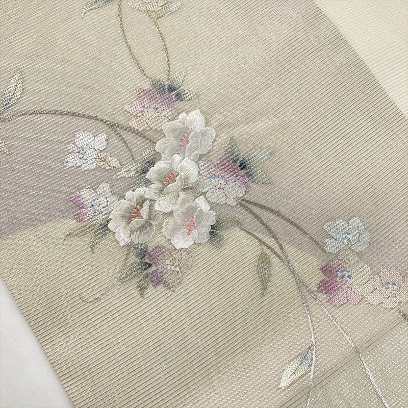 【色柄】アイボリー 生成り カジュアル すらり 花草文 絽 金銀彩 刺繍