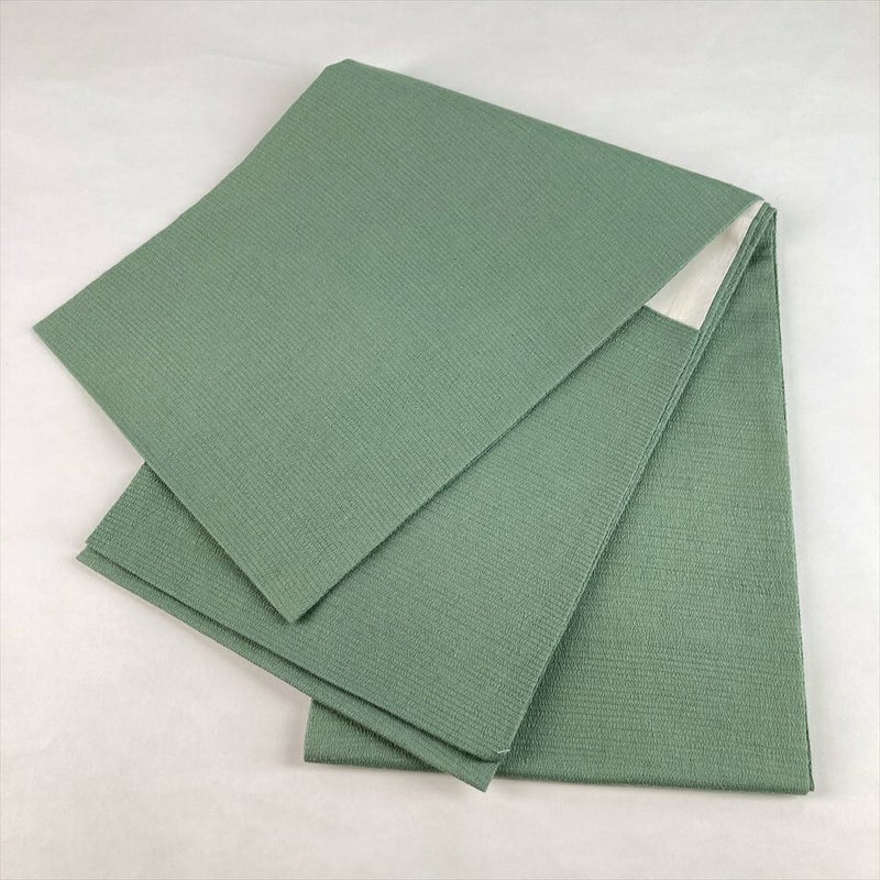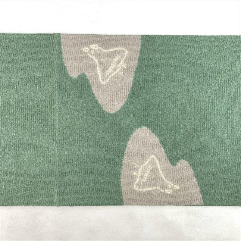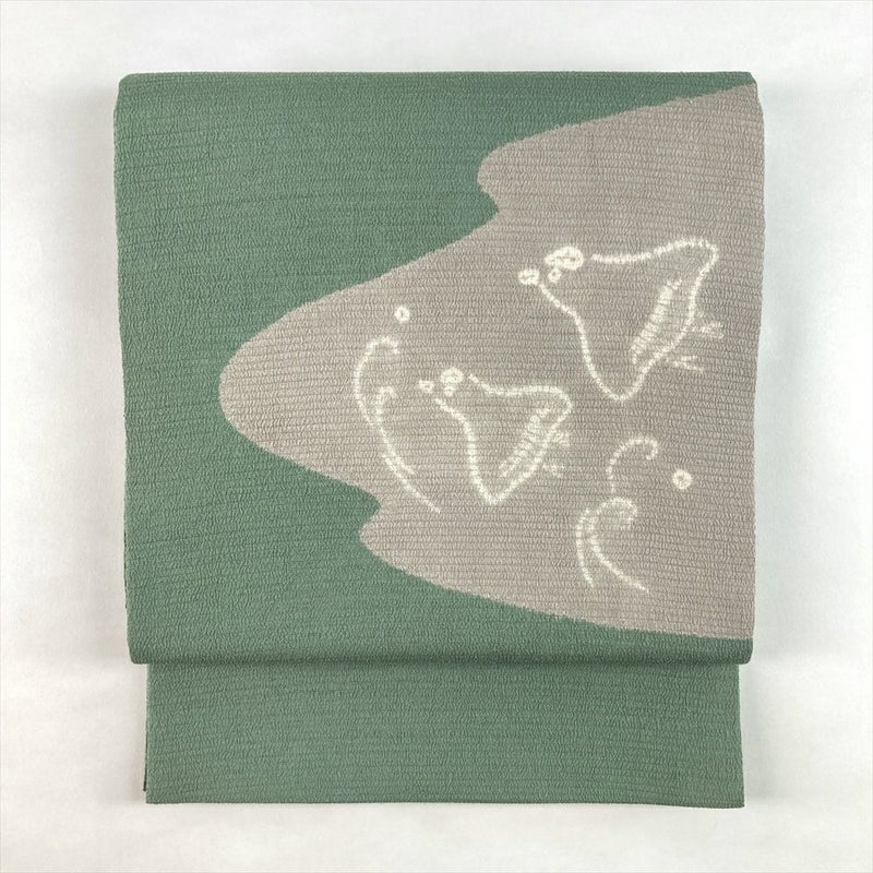 (中古)夏名古屋帯 緑 カジュアル 開き仕立て 絽縮緬 染め 絞り 愛らしい 千鳥 絹