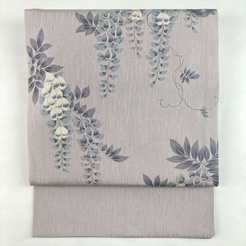 (中古)夏名古屋帯 薄紫 カジュアル 名古屋仕立て 染め 藤の花 絹