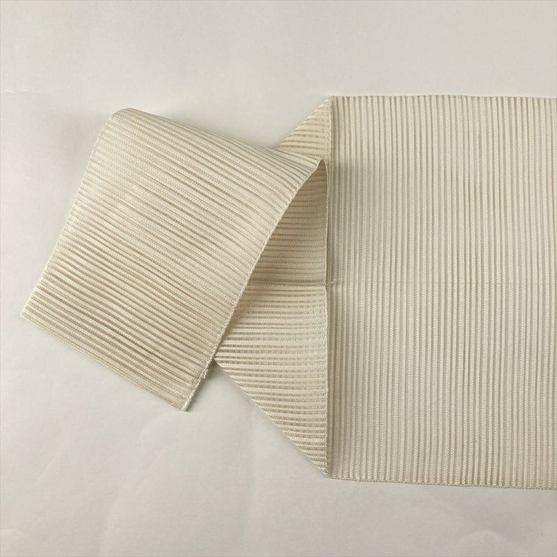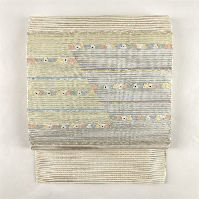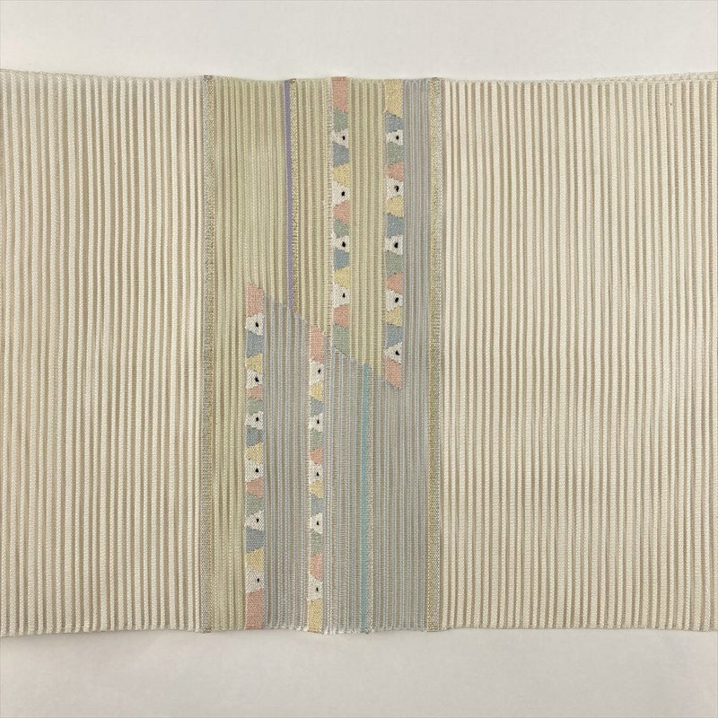 (中古)夏名古屋帯 アイボリー カジュアル 松葉仕立て 絽綴れ金糸 銀糸 横段 抽象柄 絹