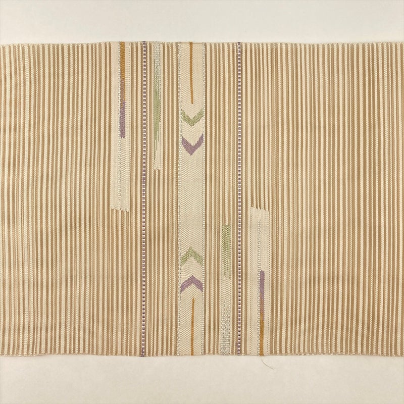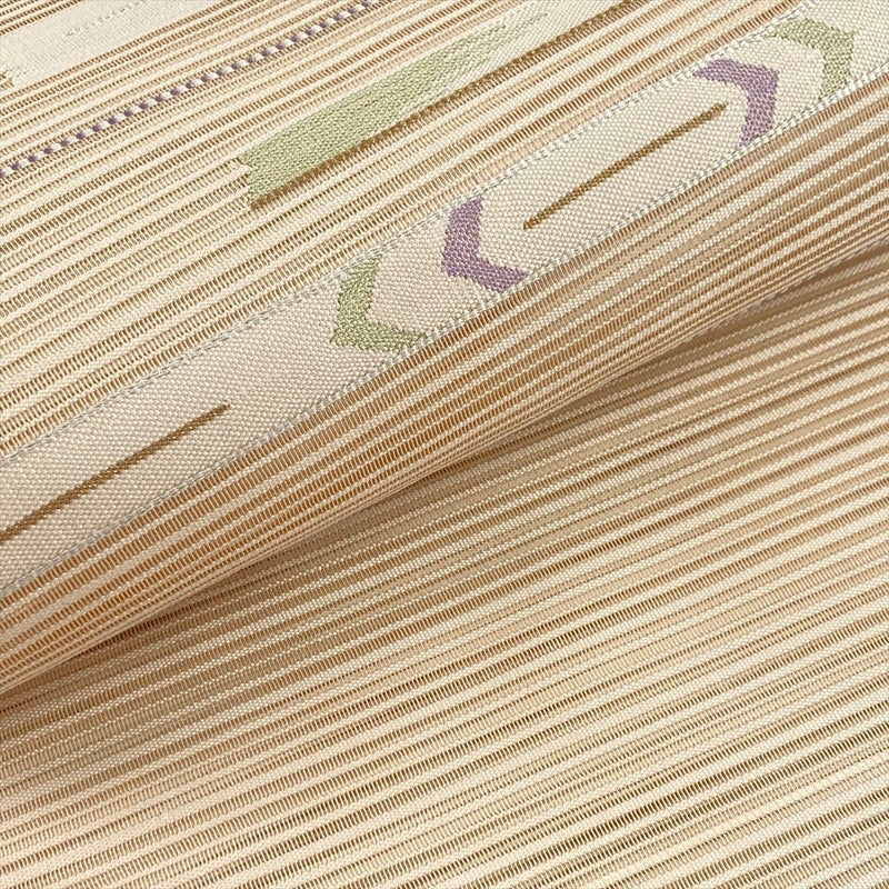 (中古)夏名古屋帯 生成り カジュアル 平仕立て 絽綴れ 抽象柄 絹