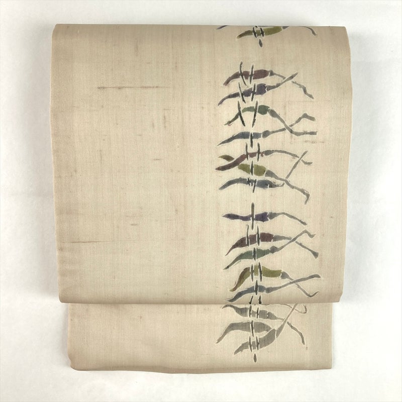 (中古)夏名古屋帯 生成 カジュアル 名古屋仕立て 染め とうがらし 絹