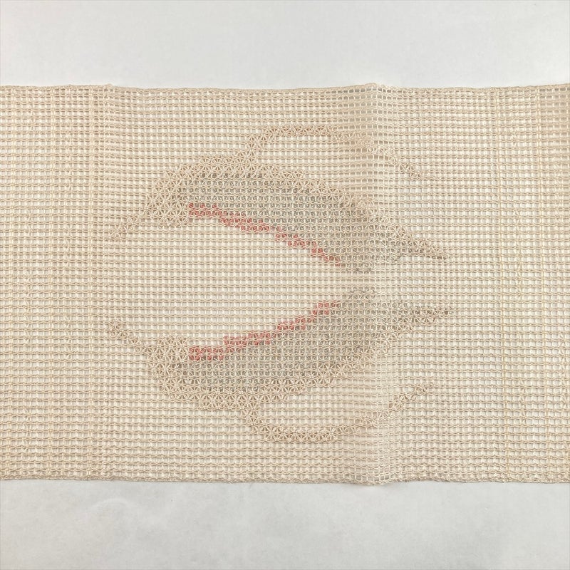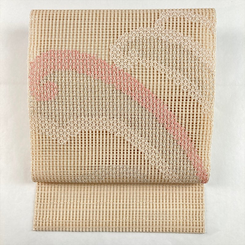 (中古)夏名古屋帯 生成 カジュアル 松葉仕立て 手織り 波 絹