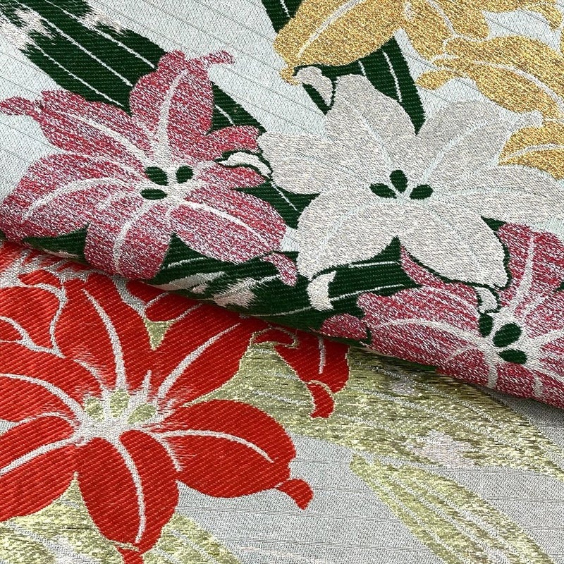 【色柄】薄緑 ヴィンテージ 百合 織り