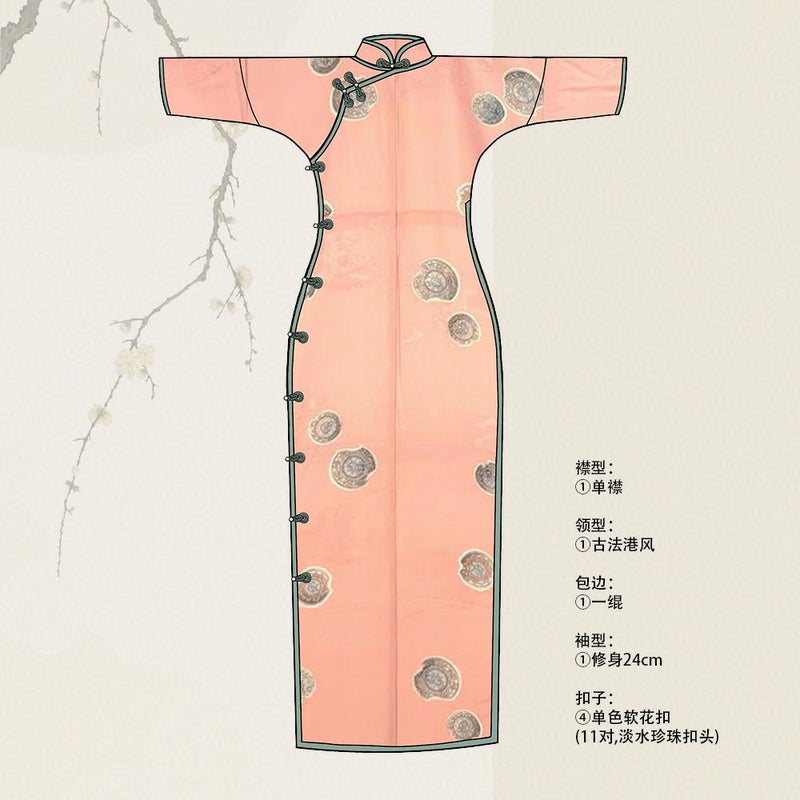 古法旗袍定制 小纹 粉色 盘子图案 暗纹织 チャイナドレス 仕立て オーダーメイド