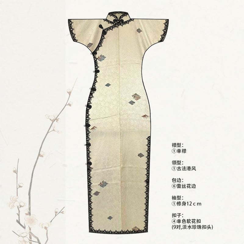 古法旗袍定制 单衣小纹 白色 菱形图案飞纹 チャイナドレス 仕立て オーダーメイド